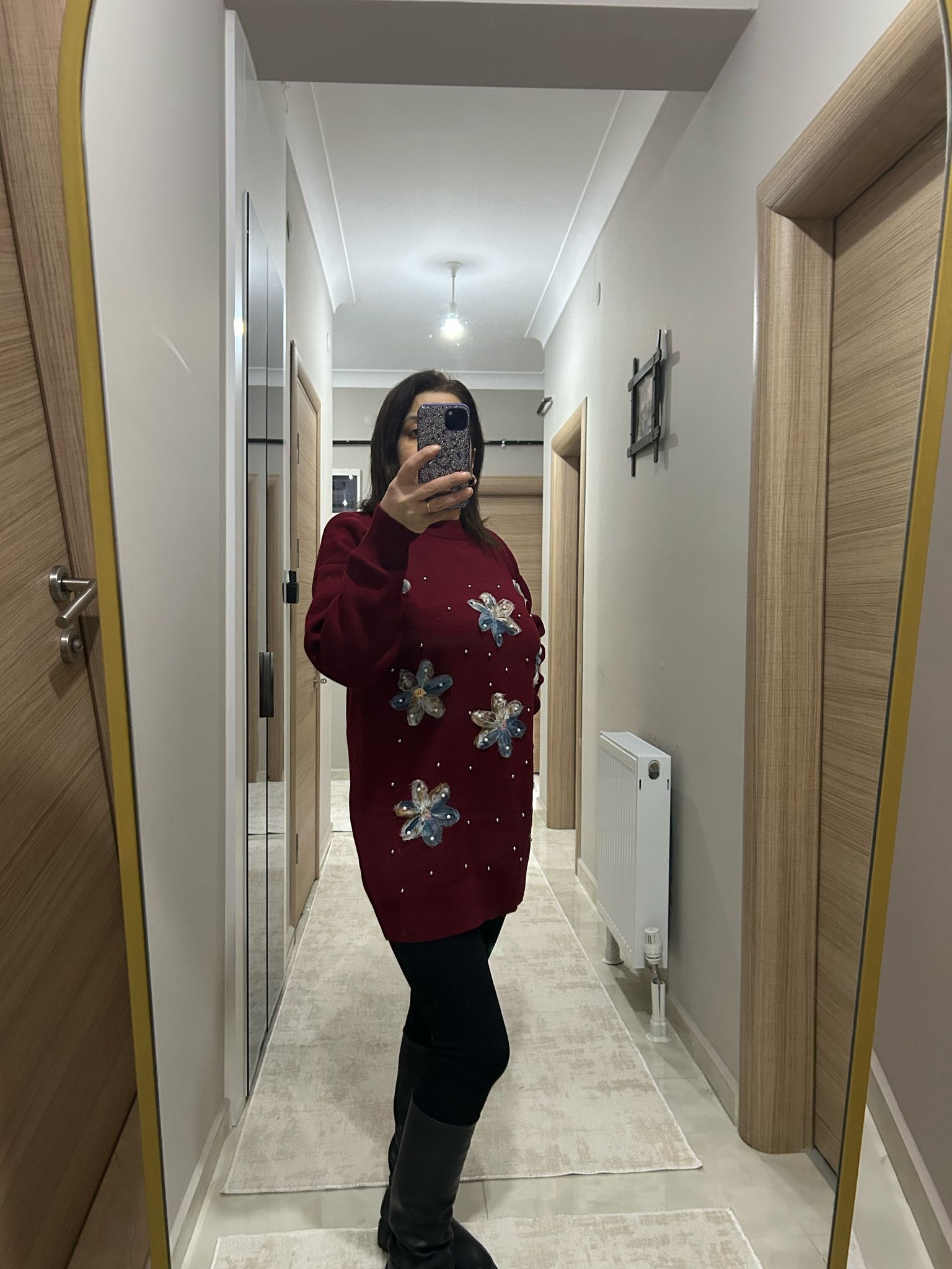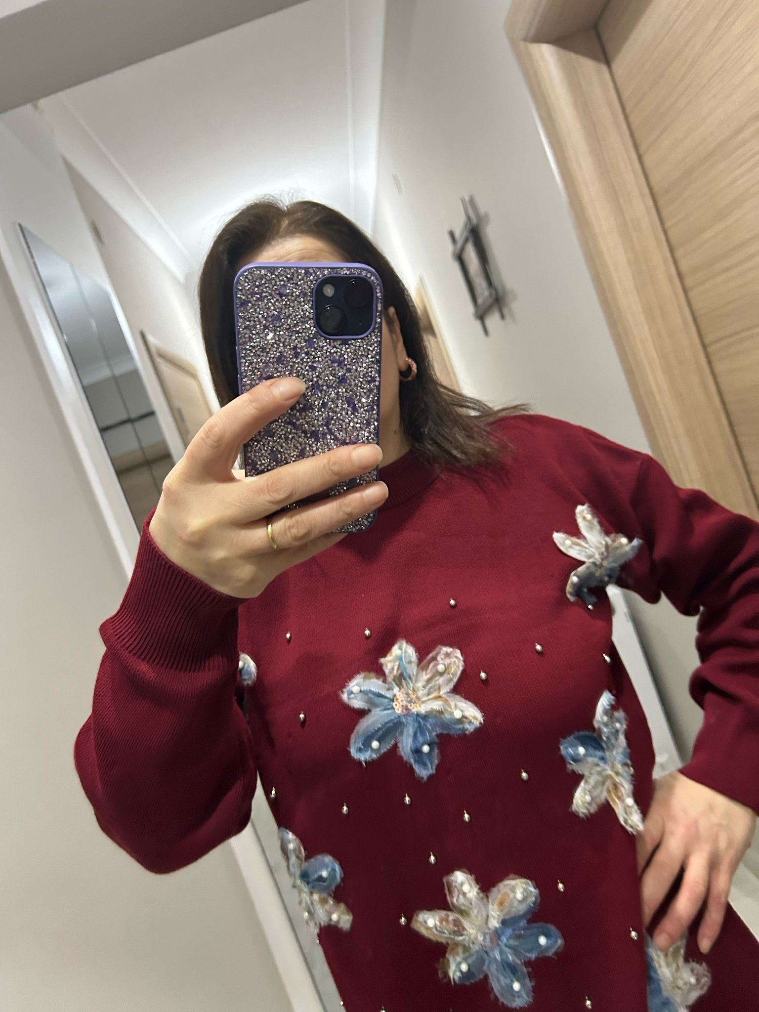Çiçek Desenli Bordo Kazak - Ürün Açıklaması