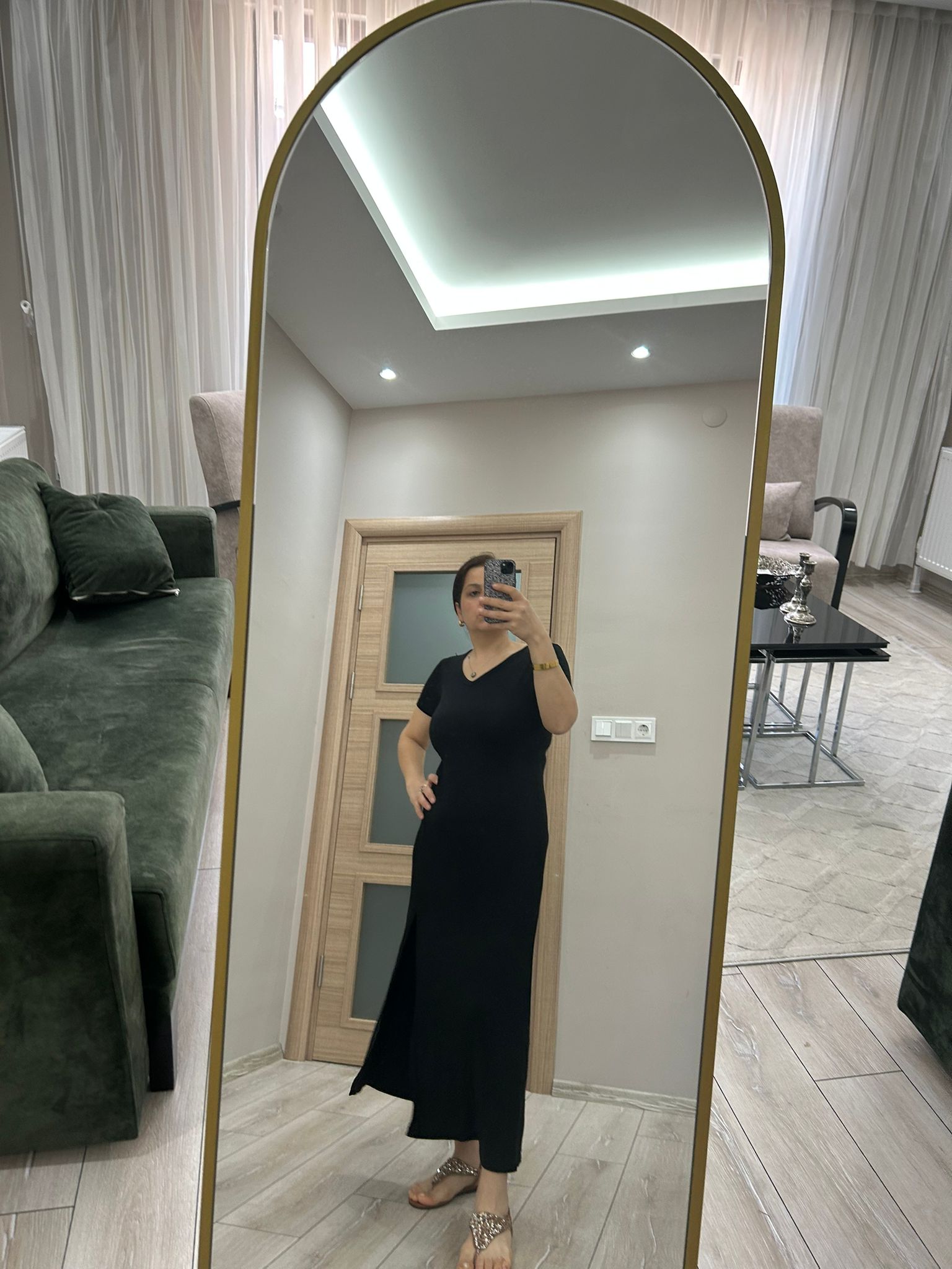 Elbisenin V yakası, zarif bir görüntü sağlarken boyun ve dekolte bölgesini vurgular. Uzun yırtmaç detayı ise elbiseye hareket katarken aynı zamanda feminen bir hava yaratır. Yırtmaç, yürüyüşlerinizde size özgürlük tanırken, şıklığınızı da artırmanıza yardımcı olur.